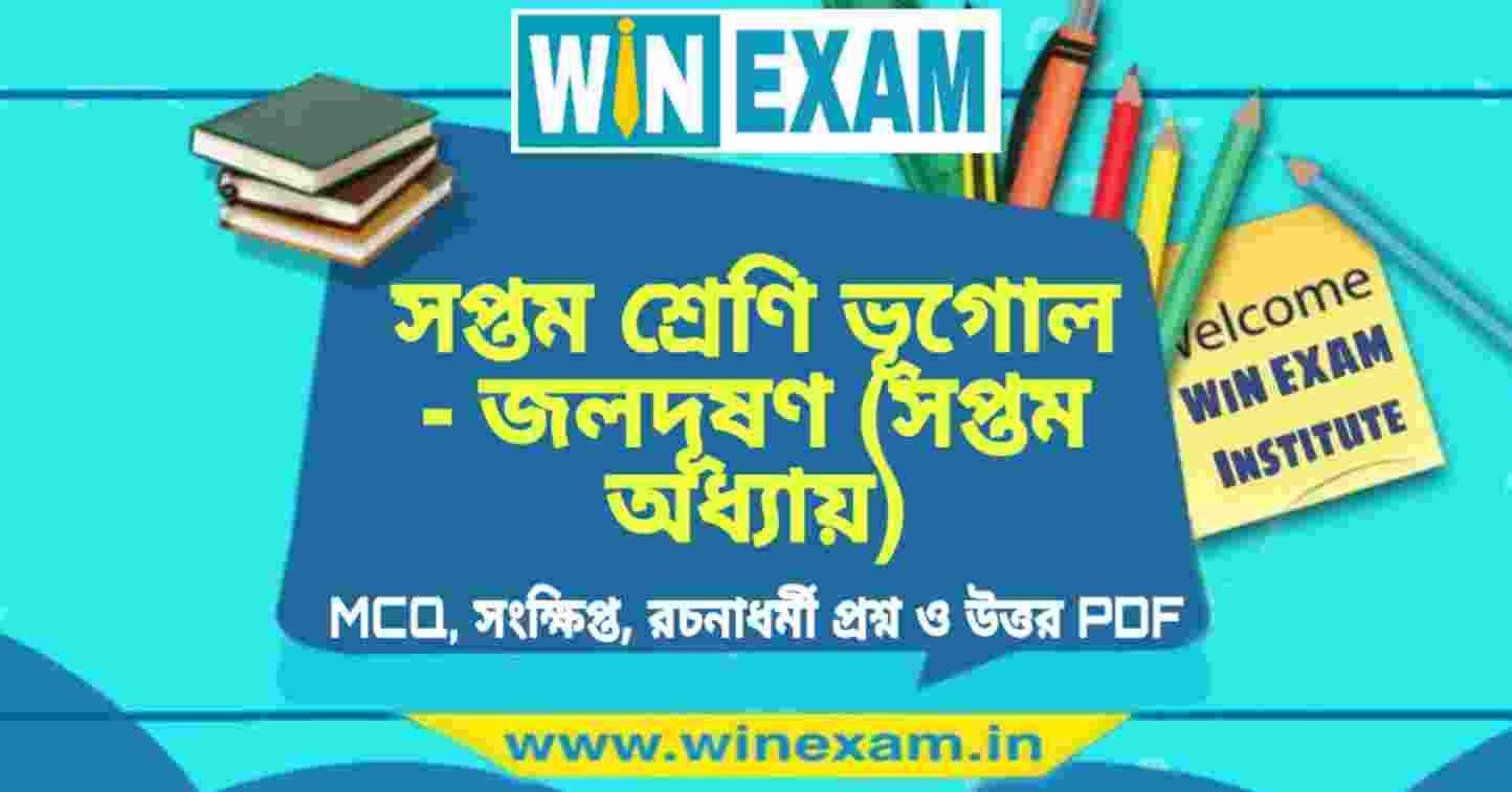সপ্তম শ্রেণীর ভূগোল প্রশ্ন ও উত্তর | পশ্চিমবঙ্গ সপ্তম শ্রেণি ভূগোল সাজেশন নোট (West Bengal Board Class 7th Geography Suggestion) | জলদূষণ (সপ্তম অধ্যায়) – MCQ, SAQ, Short, Descriptive Question and Answer