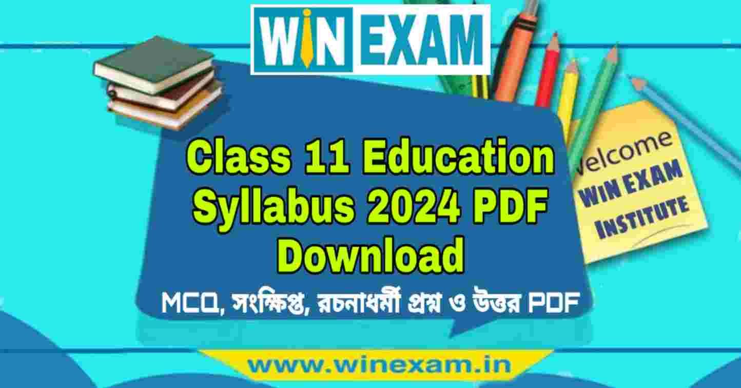 Download Class 11 Education 2024 Suggestion with all the important questions and Notes. This year Class 11 2024 Education exam will start on Wednesday, 21 February 2024 at 02.00 pm to 05.15 pm. Download West Bengal Class 11 2024 Education Suggestion.